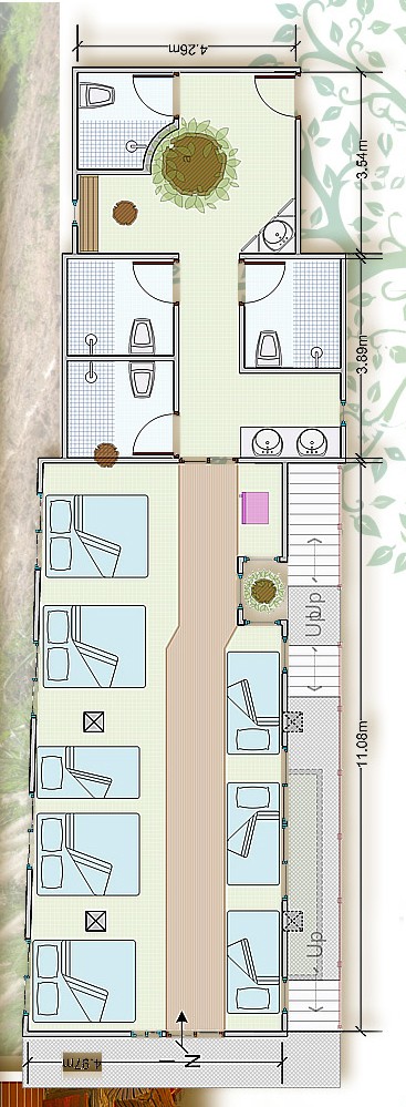 มีขนาดฝั่งละ 6.5 ตร.ม. มาตรฐานพักได้ฝั่งละ 12 ท่าน