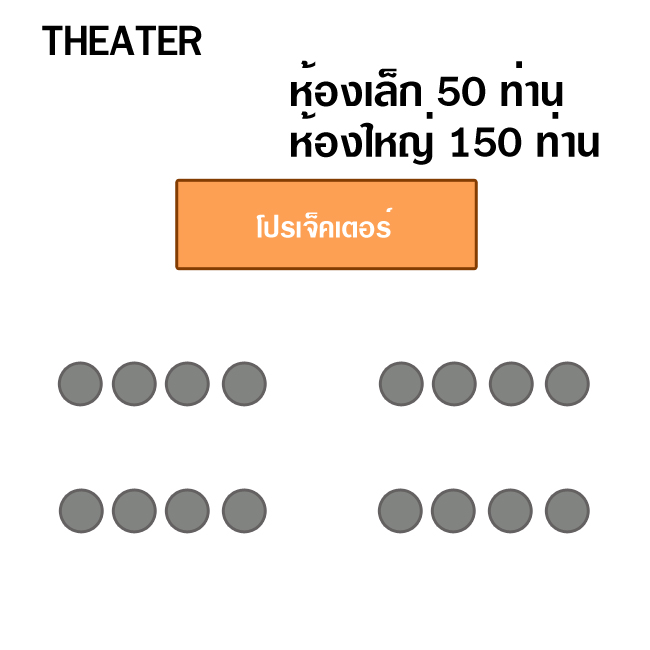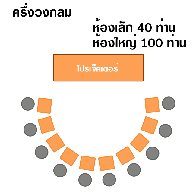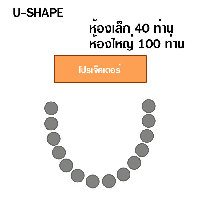 รูปแบบการจัดห้องสัมมนา (ระบุรูปแบบการจัดห้องสัมมนาได้ที่ศูนย์รับจอง)