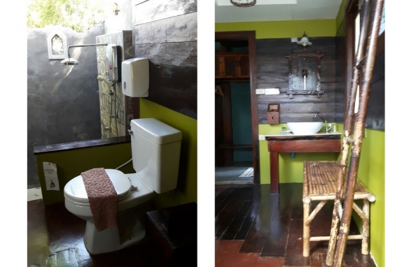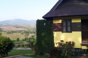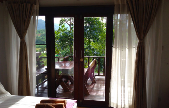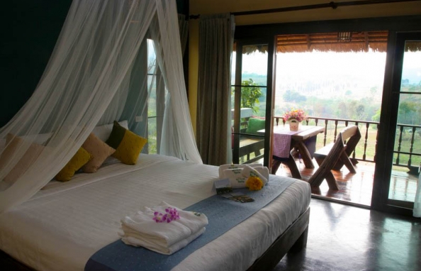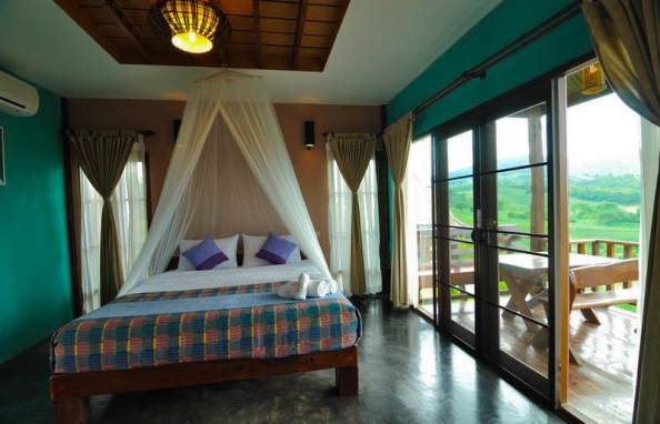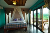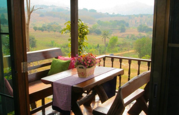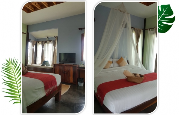 จุดเด่น : การตกแต่งเน้นความโปร่งสบาย อากาศถ่ายเท เราเลือกใช้วัสดุที่แข็งแรง เน้นงานไม้และงานปูนเปลือย เพื่อให้สอดคล้องกับบรรยากาศท่ามกลางธรรมชาติ ระเบียงบ้านเห็นวิวสวยงาม วิวภูเขาปรับเปลี่ยนตามฤดูกาล ทอดแนวเทือกเขาแผงม้าพาโนราม่า และยังชมวิวพระอาทิตย์ตกดินได้ในเวลาพลบค่ำ ห้องน้ำมีพื้นที่กว้าง และส่วน Shower เป็นแบบเปิดโล่งแยกเป็นสัดส่วน ภายในห้องมีเตียงนอนขนาด 6 ฟุต